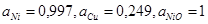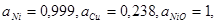 , никель из сплава будет окисляться в первую очередь и будет реализовываться равновесие сплав – NiO, а при мольных долях никеля меньших, чем
