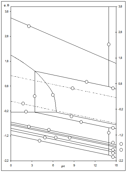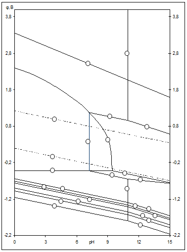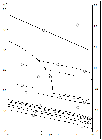 на диаграммах (рис.2.3-2.5) определяют электрохимическое поведение воды (см. табл.2.5). В области ниже линии