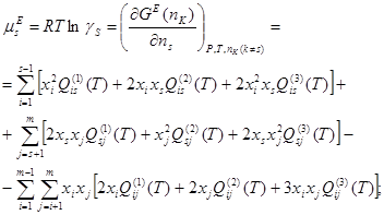 компонентов в растворе, получим избыточную энергию Гиббса