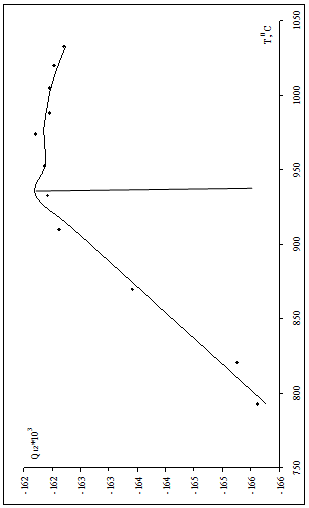 Строим зависимость энергии смешения от температуры, аппроксимируем полученную функцию по частям (рис.1.2)