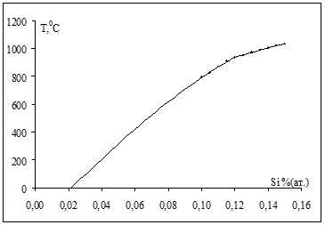 Как видно из графика, при 00С растворимость Si в Ni составляет около 0,022 % (ат.).