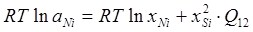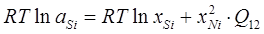 В рамках однопараметрического приближения теории "регулярных" растворов и непосредственно для системы Ni-Si эти уравнения перепишутся следующим образом: