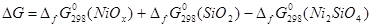 б) Расчет равновесия NiOx - Ni2SiO4 - SiO2