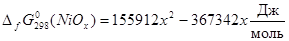 , i=1, j=1,5 и энергия Гиббса оксида NiOx: