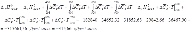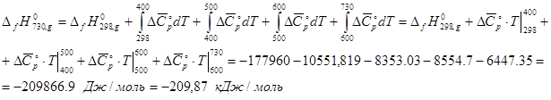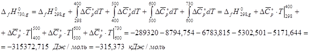 6. «Кажущуюся» стандартную энтальпию образования смеси в жидком состоянии