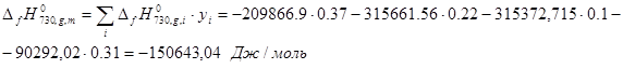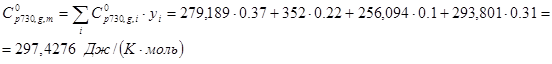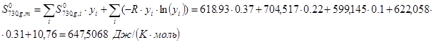 Для смесей в состоянии идеального газа энтальпия, энтропия и теплоемкость рассчитываются аддитивно с учетом переменной состава: