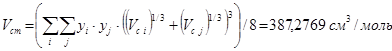 2. Псевдокритический объем смеси определяется, как функция от состава смеси и критических объемов чистых компонентов смеси:
