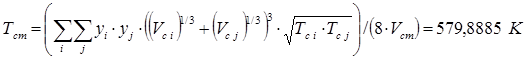 Псевдокритическая температура рассчитывается, как функция от критической температуры, критического объема и состава смеси: