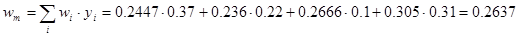 Ацентрический фактор смеси рассчитывается аддитивно: