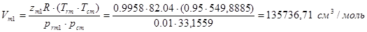 - фактор сжимаемости смеси, определяемый с помощью разложения Питцера и таблиц Ли-Кесслера.