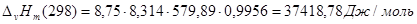 - энтальпия образования газовой смеси при стандартном давлении и температуре 298К, определена по правилу аддитивности. Энтальпии образования чистых компонентов смеси определены методом Бенсона.