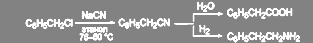 Проведение процесса цианирования хлористого бензила в двухфазной системе С6Н5СН2СI — водный раствор NаСN позволило увеличить выход продукта реакции до 95—96%. В качестве катализаторов процесса в настоящее время используют бензилтриэтиламмоний хлорид или бензилдиметилформвламмоний хлорид, которые образуются непосредственно в реакционной массе, при добавлении триэтиламина или диметилформамида (около 0,5% мольн.):