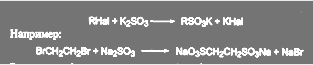 Важной реакцией, использующейся при синтезе лекарственных веществ, является реакция между сульфитом щелочного металла и органическим галогенидом (реакция Штреккера):