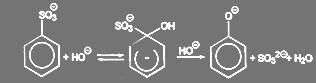 Нуклеиновое вытеснение сульфогруппы является важнейшим способом синтеза гидрокси- и аминосоединений в ароматическом ряду. Особенно часто эта реакция используется для промышленного получения гидрокси соединений. Поскольку процесс обычно поводят при взаимодействии со щёлочью при высокой температуре, то он известен так же известен под названием щелочного плавления.