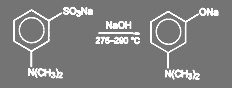 Сульфокислоты бензольного ряда обменивают сульфогруппу на гидроксил в жестких условиях, при температуре 300—340 °С. Таким образом получают фенол и резорцин. При синтезе прозерина щелочное плавление натриевой соли м-диме проводят при 275—290 °С.
