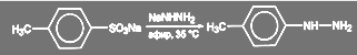 При взаимодействии с гидразидом натрия сульфогруппа в мягких условиях может быть замещена на гидразо-группу:
