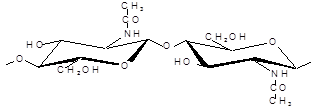 Структурный компонент хитина N-ацетил-D-глюкозамин у бактерий, наряду с N-ацетилмурамовой кислотой, является компонентом клеточной стенки. В животном мире N-ацетилглюкозамин входит в состав мукополисахаридов (гликозаминогликаны) соединительной ткани (гиалуроновой кислоты, хондроитинсульфатов, гепарина), групповых веществ крови и других гликопротеинов. Остаток N-ацетил-D-глюкозамина обычно находится на восстановленном конце углеводных цепей животных гликопротеинов, образуя связь углевод – белок. Этим объясняется совместимость хитина и хитозана с живыми тканями. Наиболее распространённым типом связи в животных гликопротеинах является N-гликозидная связь, образуемая остатком N-ацетилглюкозамина и b-амидной группой аспаргина.[1,2]