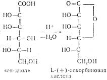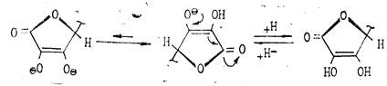 Аскорбиновая кислота представляет собой белое кристаллическое вещество с Тпл 192°, очень чувствительна к нагреванию, хорошо растворима в воде, плохо в спиртах (за исключением метанола), практически нерастворима в неполярных растворителях. Она очень чувствительна к тяжелым металлам, медь и железо разрушающе, действуют на аскорбиновую кислоту. Аскорбиновая кислота легко отщепляет протон гидроксила в положении Сз кольца и по силе не уступает карбоновым кислотам: