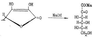 При нагревании со щелочами аскорбиновая кислота легко гидролизуется, превращаясь в соль 2-кето-L-гулоновой кислоты: