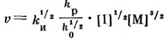 где kи, kp, k0 – константы скорости соответственно инициирования, роста и обрыва; [I] – концентрация инициатора (или мощность дозы радиации); [М] -, концентрация мономера.