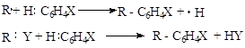 В зависимости от характера ковалентных связей при замещении в бензольном кольце возможны три типа реакций: гомолитическое, электрофильное и нуклеофильное замещение. При гомолитическом разрыве ковалентной связи образуются частицы, обладающие неспаренным электроном, - радикалы, например: