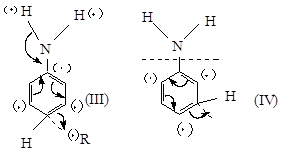 Так как заместители NH2 и CH3 в переходных состояниях IV и VI не участвуют в рассредоточении облака неспаренного электрона, энергия переходных состояний IV и VI выше энергии переходных состояний III и V соответственно. Это и является причиной преимущественного протекания радикальных реакций в пара- и (орто-) положения. Радикальное замещение в бензольном кольце облегчается как заместителями I рода, так и заместителями II рода.