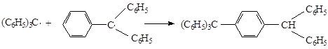 При автокаталитической конденсации (под влиянием соленой кислоты) свободных триарилметильных радикалов по Чичибабину происходит образование n-бензгидрилтетрафенилметана, т.е. происходит радикальное замещение в пара-положение: