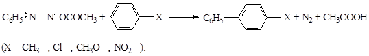 При разложении фенилдиазоацетата в среде замещенных бензола во всех случаях образуется n- замещенные природные дифенилы: