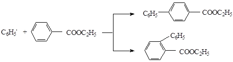 Фенильные радикалы, образующиеся при обработке иодбензола медным порошком в среде этилбензоата, реагируют с последним, давая эфиры дифенил – 2 и дифенил – 4 – карбоновых кислот: