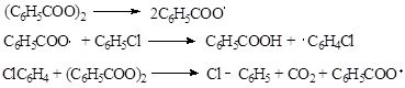 При распаде перекиси бензола в среде замещенных бензола констатировано образование орто- и пара- замещенных дифенила.
