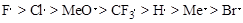 2. реакционная способность в мета- положении обычно близка к реакционной способности незамещенного бензола и может лишь незначительно отклонятся в ту или другую сторону. Это означает, что все заместители являются дезактивирующими или мета- направляющими.