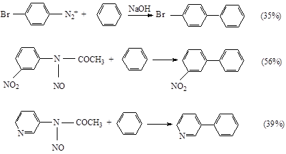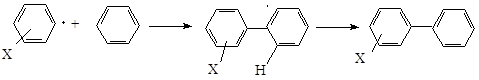Возможно, что наиболее полезным применением реакций ароматического замещения, протекающих по радикальному механизму, является синтез бифенилов: