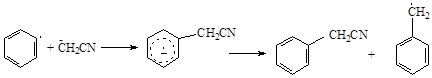 a-цианокарбанионов, но выходы продукта алкилирования сильно уменьшаются вследствие образования побочных продуктов в результате выброса цианид - иона из радикал – аниона: