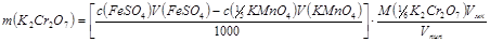 Расчетную формулу для m(К2Cr2О7) получают из соотношений количеств веществ для стадий 1 и 2: