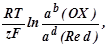 Зависимость редокс-потенциала E(OX/Red) от концентрации и температуры передается уравнением Нернста: