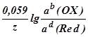 При подстановке в уравнение Нернста значений R, F и T = 298 К, а также переходе к десятичному логарифму, получим