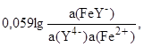 E(Fe3+/Fe2+) = E(FeY-/Fe2+) +