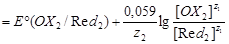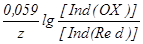 Потенциал редокс-пары Ind(OX) /Ind(Red) может быть вычислен по уравнению Нернста: