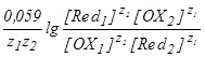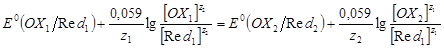 Количественной характеристикой направления и полноты протекания ОВР является её константа равновесия Кравн. Формулу для расчета Кравн можно вывести из условия установления состояния равновесия в редокс-системе, когда E(OX1/Red1) становится равным E(OX2/Red2). В этот момент