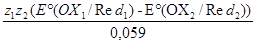 E(OX1/Red1) - E(OX2/Red2) = .