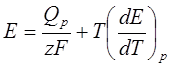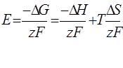 Поскольку работа в ТЭ проявляется в виде электрической работы, то ее можно записать в виде произведения ЭДС (равновесного напряжения) на количество прошедшего через цепь электричества