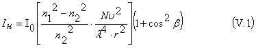 где Iн и I0 - интенсивности рассеянного и падающего света; n1 и n2 - коэффициенты преломления частиц и среды; N - общее количество светорассеивающих частиц; х - объем одной частицы; л - длина волны падающего света; r - расстояние до приемника рассеянного света; в - угол между падающим и рассеянным светом. В условиях нефелометрического определения ряд величин остается постоянным и уравнение (V.1) переходит в