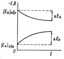 где Еа и Ек – достигнутые при данном значении тока электродные потенциалы, называемые эффективными; ΔЕа и ΔЕк – смещение потенциалов анода и катода.