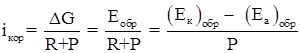 Явление электродной поляризации тормозит протекание коррозионного процесса; Уравнение, позволяющее оценить скорость электрохимического коррозионного процесса, величину коррозионного тока, в общем виде записывается следующим образом