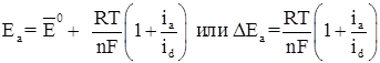 Если энергия активации электродной реакции мала и реакция протекает с малым перенапряжением, то зависимость Еа–ia определяется в основном концентрационной поляризацией. Это значит, что найденное Еа мало отличается от Ер и зависит от активности (или для разбавленных растворов