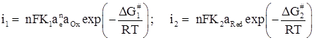 , перенапряжению при катодной реакции приписывают отрицательный знак, при анодной реакции – положительный. Отсюда величины катодного и анодного токов выражаются уравнениями: