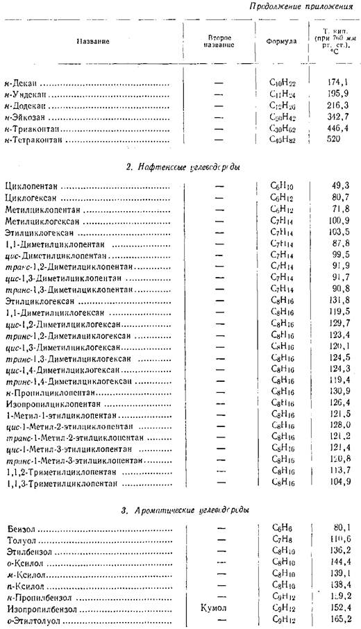 · В скобках дано содержание нормальных парафиновых углеводородов. · ** Сумма нормальных и изопарафиновых углеводородов. | ||||||