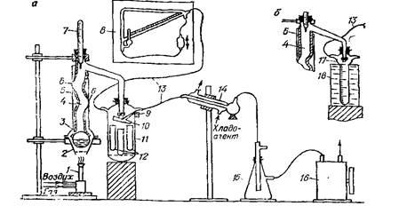 Рис. B.5. Перегонная установка с препаративным (а) и накопительным приемникам» фракций: