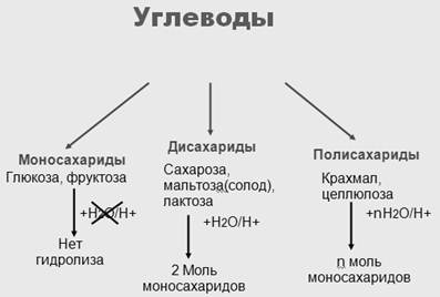 Наиболее распространенными углеводами являются глюкоза, фруктоза и сахароза, входящие в состав овощей, фруктов и меда. Лактоза входит в состав молока. Сахар-рафинад представляет собой соединение фруктозы и глюкозы.