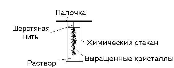 Ход работы: Кристаллы выращивают в основном способом постепенного охлаждения насыщенного раствора, так как это позволяет в более короткие сроки вырастить большие кристаллы правильной формы. В научной и методической литературе описываются различные методы выращивания кристаллов.